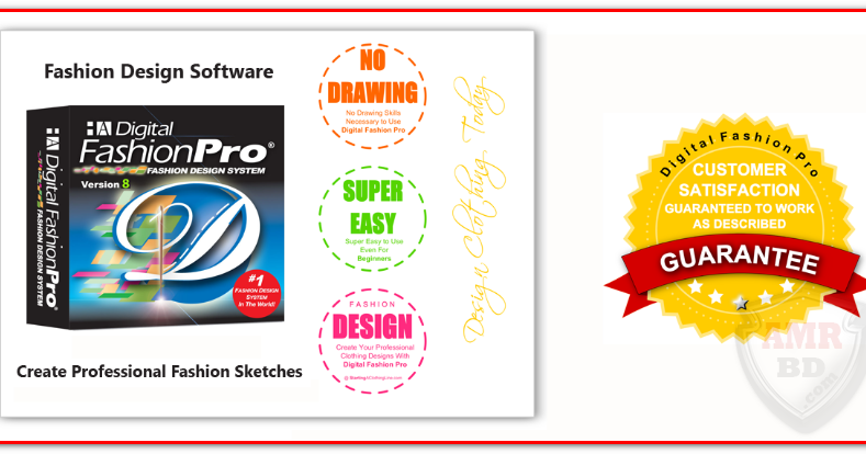WHAT IS INCLUDED IN DIGITAL FASHION PRO? Digital Fashion Pro clothing design software is a complete system consisting of hundreds of customizable clothing templates, hundreds of real digital fabrics, materials & textures, button & zipper templates, apparel effect & stitch simulation templates, fashion graphics, model poses & fast track step by step tutorials (screenshots & videos). All Digital Fashion Pro users will be able to create realistic / professional digital with the program regardless of prior drawing or fashion experience. Digital Fashion Pro can help you become a fashion designer as well as start your own clothing line. Get your style ideas out of your head and into the real world with Digital Fashion Pro Today!